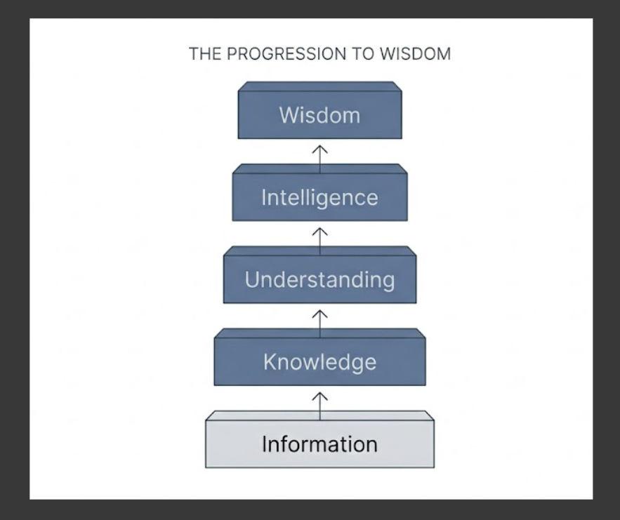Most people stop at information. Some reach knowledge. Very few reach wisdom. Not because they can’t. Because they never had a system that moves them through the progression.